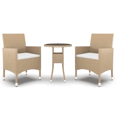 Sodo valgomojo baldų komplektas, 3 dalių, smėlio, poliratanas