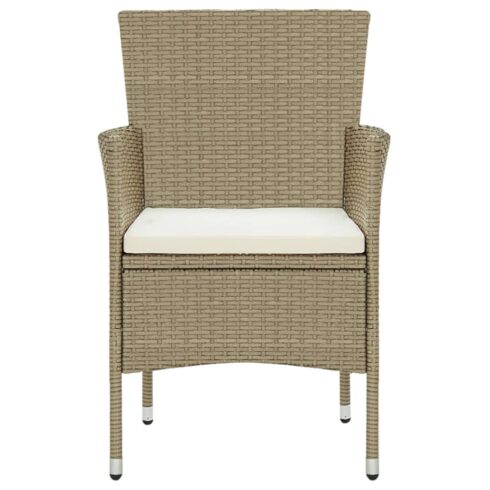 Šis sodo kėdžių komplektas patraukliai atrodys bet kurioje erdvėje. Rankomis austu PE ratanu apvyniotas tvirtas plieno rėmas užtikrina, kad krėslas yra atsparus rūdims ir pelėsiui bei užtikrins daugybę metų kokybiško poilsio. Lauko kėdė pasižymi lenktu atlošu ir porankiais bei didžiausią komfortą užtikrinančia ergonomiška forma. Pridėta sėdynės pagalvėlė sėdėjimo metu suteikia papildomos atramos.