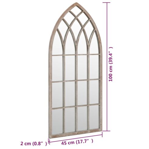 Veidrodis yra pagamintas iš tarsi surūdijusios atrodančios patvarios geležies, kas suteikia jam senovinės išvaizdos. Jis gali būti naudojamas, norint pabrėžti sodo ypatybes, atspindint jas veidrodyje, arba nukreipti šviesą į tamsų kampą. Veidrodis sode yra kūrybingas būdas suteikti sodui dar daugiau patrauklumo ir sukurti jame erdvumo pojūtį. Viršuje iš anksto išgręžtos skylės užtikrina, kad dekoratyvus veidrodis gali būti paprastai pritvirtintas prie sienos.