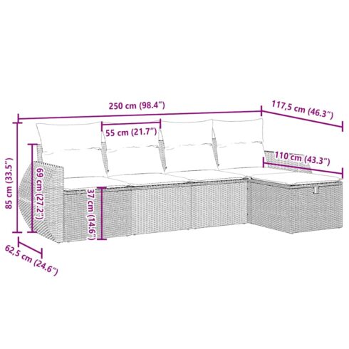 Įsigykite Sofos komplektas su pagalvėlėmis, 5 dalių, pilkas, poliratanas pigiau!