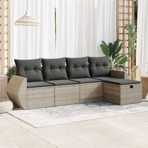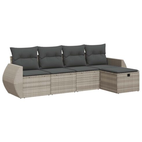Įsigykite Sofos komplektas su pagalvėlėmis, 5 dalių, pilkas, poliratanas pigiau!