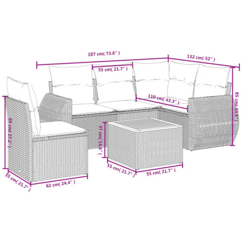 Įsigykite Sofos komplektas su pagalvėlėmis, 6 dalių, smėlio, poliratanas pigiau!