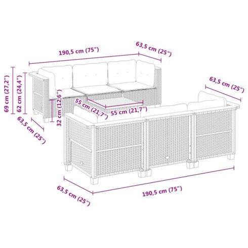 Sofos komplektas su pagalvėlėmis, 7 dalių, smėlio, poliratanas