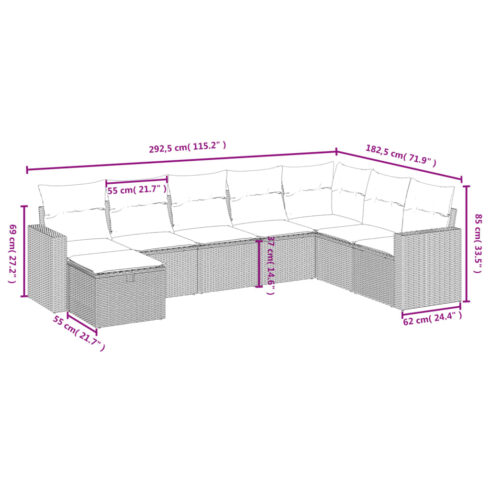 Įsigykite Sofos komplektas su pagalvėlėmis, 8 dalių, juodas, poliratanas pigiau!
