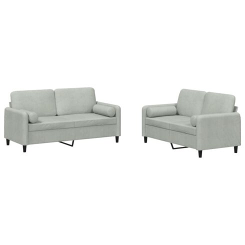 Įsigykite Sofos komplektas su pagalvėmis, 2 dalių, pilkas, aksomas pigiau!