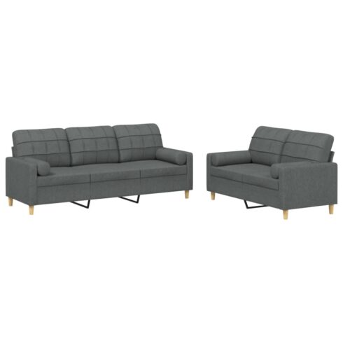 Įsigykite Sofos komplektas su pagalvėmis, 2 dalių, pilkas, audinys pigiau!