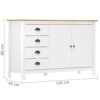Šoninė spintelė Hill, balta, 130x40x80cm, pušies masyvas