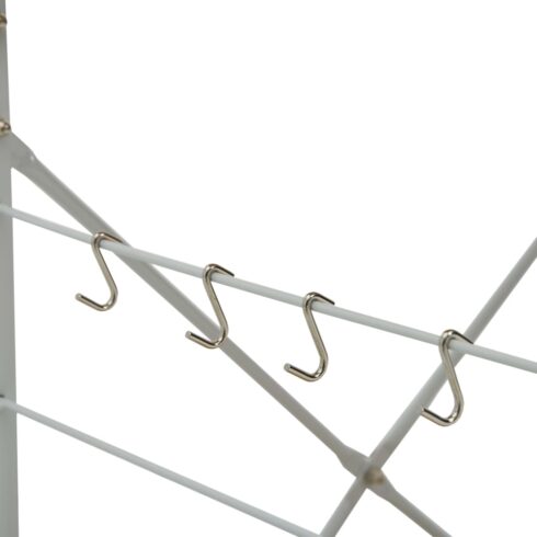 Pagaminta iš apdirbtos medienos, ši virtuvės lentyna yra lengvai valoma drėgna šluoste. Plieno konstrukcija užtikrina, kad ji yra atspari rūdims bei suteikia jai patvarumo. Ši lentyna yra 3 aukštų, kurie suteikia pakankamai vietos daiktams laikyti. Ši spintelė šone turi kabliukus puodams, keptuvėms, įrankiams, kepimo pirštinėms ir daugybei kitų daiktų pakabinti. Ją taip pat galėsite naudoti savo kolekcionuojamiems daiktams, nuotraukų rėmeliams ir kt. susidėti svetainėje ar biure.