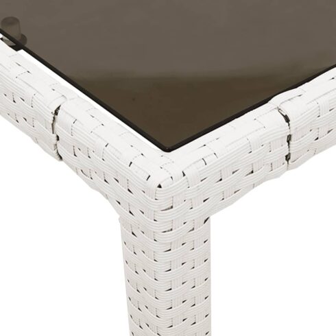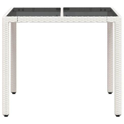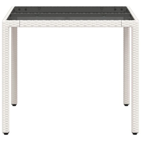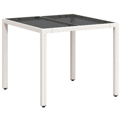 Stalas su stikliniu stalviršiu, baltas, 90x90x75cm, poliratanas