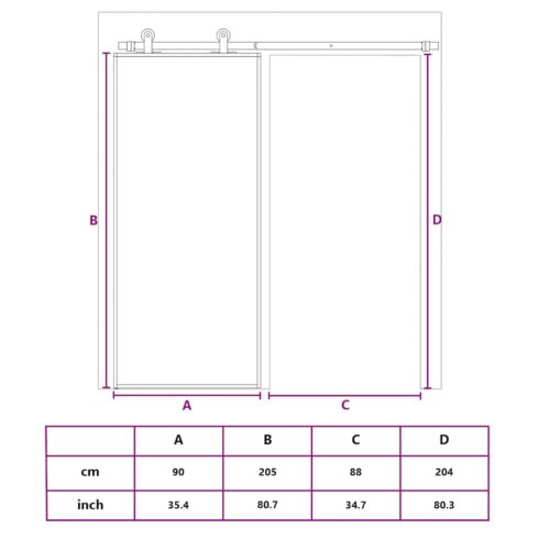 - Durų matmenys: 90 x 205 cm (plotis x aukštis)