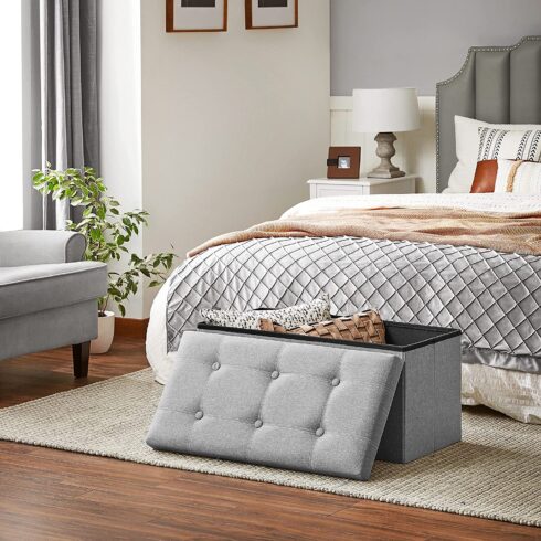 • Jūsų nuosava lobių skrynia: šioje skrynioje gal ir nėra aukso, tačiau jos išorė puošta stilingu, sagomis puoštu lino imitacijos dangčiu, o viduje – erdvi 80 litrų talpos daiktadėžė – taip pat neblogai!