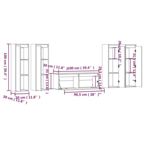 - 4 x televizoriaus spintelės: 30 x 30 x 100 cm (plotis x gylis x aukštis)