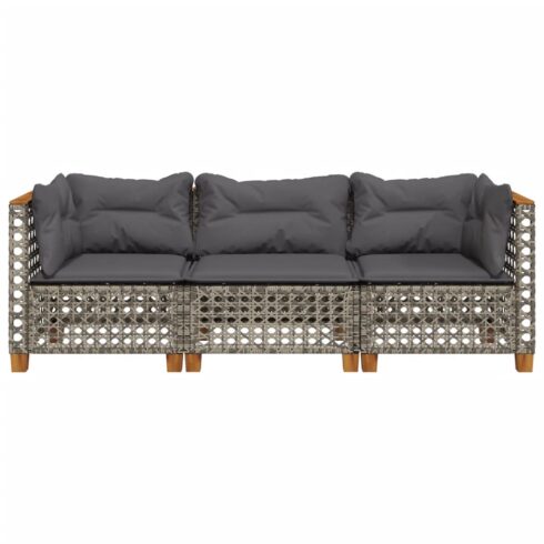 Trivietė sodo sofa su pagalvėlėmis, pilkos spalvos, poliratanas