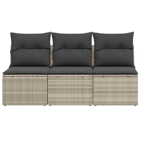 Trivietė sodo sofa su pagalvėlėmis, šviesiai pilka, poliratanas