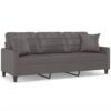 Trivietė sofa su pagalvėlėmis, pilka, 180cm, dirbtinė oda