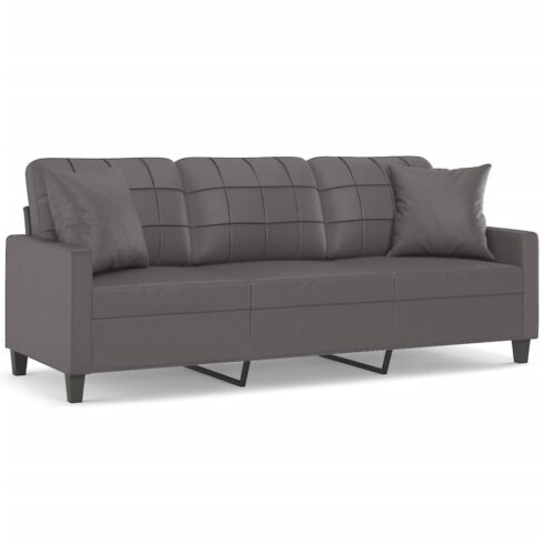 Įsigykite Trivietė sofa su pagalvėlėmis, pilka, 180cm, dirbtinė oda pigiau!