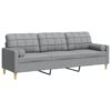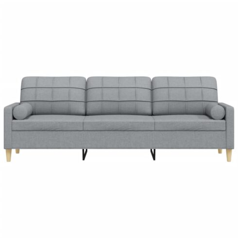 Trivietė sofa su pagalvėlėmis, šviesiai pilka, 210cm, audinys