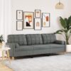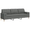 Įsigykite Trivietė sofa su pagalvėlėmis, tamsiai pilka, 210cm, audinys pigiau!