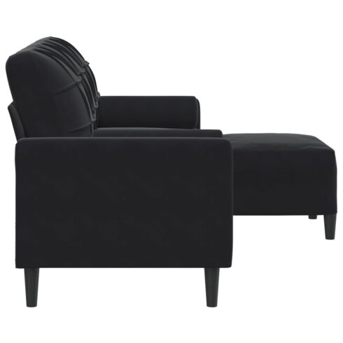 Trivietė sofa su pakoja, juodos spalvos, 180cm, aksomas