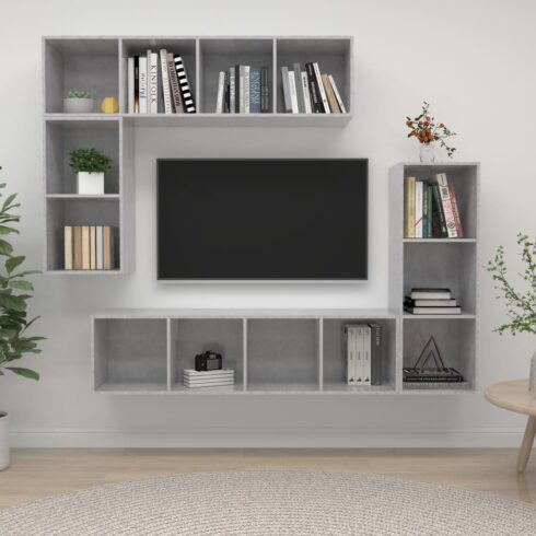Įsigykite TV spintelių komplektas, 4 dalių, betono pilkas, mediena pigiau!