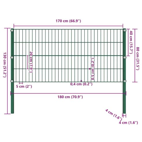 Tvoros plokštė su stulpais, geležinė, 176,5x80cm, žalia