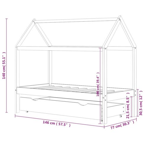 Lova yra išmaniai sukurta su namelio medyje dizaino rėmu ant kurio, norėdami suteikti savo vaikui privatumo, galėsite pakabinti lovos užuolaidas. Ji taip pat gali būti naudojama kaip skaitymo kampelis ar jūsų vaikų namelis žaidimams. Pagamintas iš pušies medienos masyvo, šis lovos rėmas yra nepaprastai tvirtas ir patvarus. Tvirtos lentjuostės suteikia reikiamą atramą ir yra itin patogios. Pridėtas lovos stalčius su 2 rankenomis suteikia pakankamai vietos sulankstytiems drabužiams, žaislams ir kitiems daiktams laikyti, taip užtikrinant, kad jūsų kambarys išliks švarus ir tvarkingas. Ratukai lengvai važiuoja tiek per kilimu dengtas, tiek per medines grindis. Šis lovos rėmas tinka 70 x 140 cm dydžio čiužiniui.