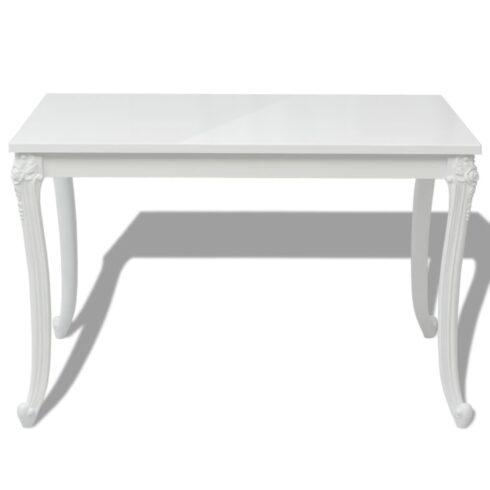 Šis ypač blizgus baltas stalas gražiai atspindės šviesą ir prisidės prie jūsų pietų iškilmingumo. Šis valgomojo stalas yra pagamintas iš vidutinio tankio medienos plaušų plokščių (MDF). Keturios patikimos kojos yra pagamintos iš lengvo plastiko.