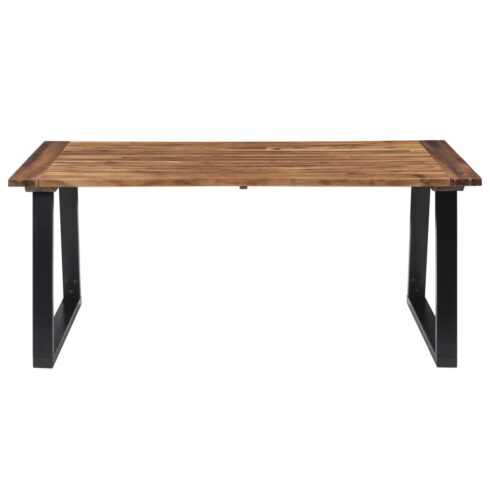 Šis valgomojo stalas yra labai patvarus ir jus džiugins daug metų. Stalviršis yra pagamintas iš ilgaamžės, masyvios akacijos medienos. Natūralios medžio linijos atrodo ypatingai gražiai. Unikalios, U formos kojelės iš milteliniu būdu dengto metalo suteikia industrinį stilių ir užtikrina ypatingą stabilumą.