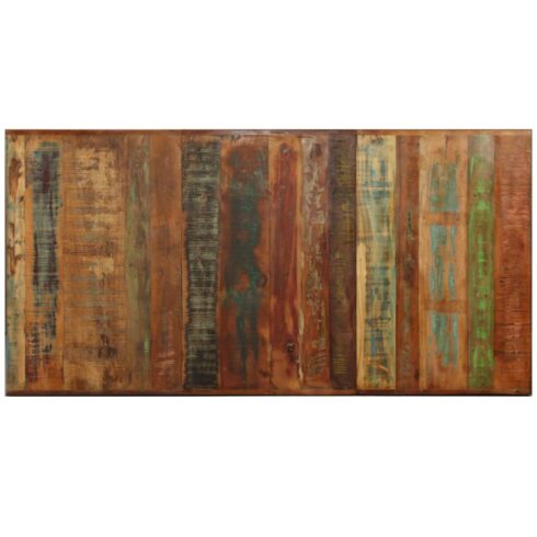 Šis valgomojo stalas yra pagamintas iš perdirbtos medienos masyvo, o tai reiškia, jog jis pasižymi skirtingų medžių, tokių kaip tikmedis, mango, akacijos mediena ir kitų, savybėmis. Perdirbta mediena yra tvirta, stabili, patvari ir graži. Nusidėvėjimo ir gamybos žymės kiekvienam baldui suteikia unikalią išvaizdą ir praturtina jo įspūdingą senovinį stilių. Valgomojo stalas yra rankų darbo, o kiekvienas gamybos žingsnis yra atliekamas itin kruopščiai, nesvarbu ar tai būtų poliravimas, dažymas ar lakavimas. Plieno kojelės bei kryžminio plieno rėmas suteikia pramoninio žavesio bei užtikrina tvirtą konstrukciją.