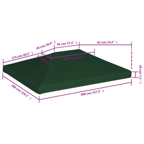 Viršutinis pavėsinės uždangalas, žalias, 310 g/m², 4x3m