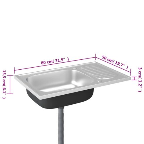 Įsigykite Virtuvės plautuvė su padėklu, sidabrinė, 800x500x155mm, plienas pigiau!