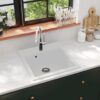 Virtuvinė plautuvė, balta, granitas, vieno dubens