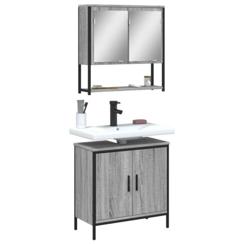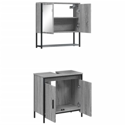Vonios baldų komplektas, 2 dalių, pilkas ąžuolo, mediena