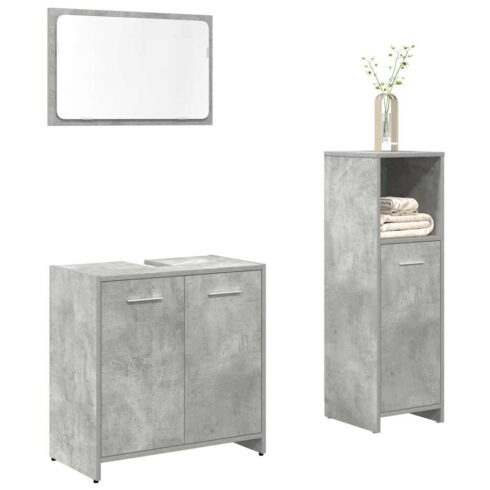 Vonios baldų komplektas, 3 dalių, betono pilkas, mediena