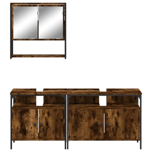 Įsigykite Vonios baldų komplektas, 3 dalių, dūminio ąžuolo, mediena pigiau!