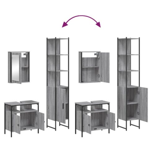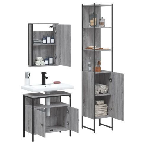 Vonios baldų komplektas, 3 dalių, pilkas ąžuolo, mediena
