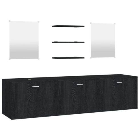 Įsigykite Vonios baldų komplektas, 6 dalių, juodas, apdirbta mediena pigiau!