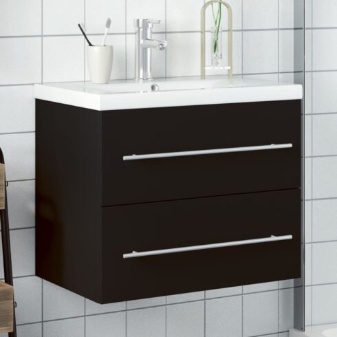 Įsigykite Vonios praustuvo spintelė su įmontuotu praustuvu, juoda pigiau!