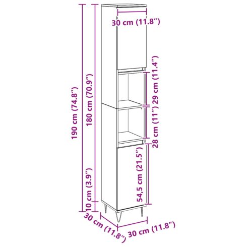 Ši medinė vonios spintelė su stačiakampiu dizainu praturtina bet kurios vonios estetiką, suteikdama patogaus saugojimo, su 30 x 30 x 190 cm matmenimis. Jos elegantiškas ir modernus stilius papildo tiek šiuolaikines, tiek tradicines erdves. Su blizgia inžinerinės medienos apdaila, ji ne tik atrodo gerai, bet ir praktiška, ideali mieste arba šeimos namuose.