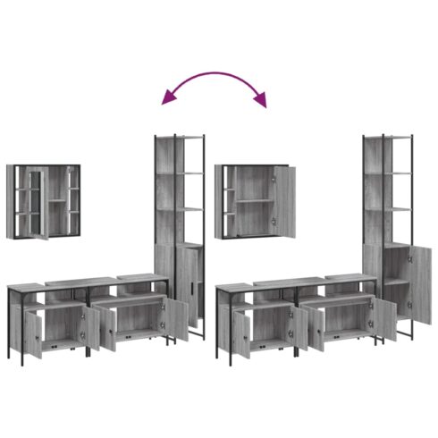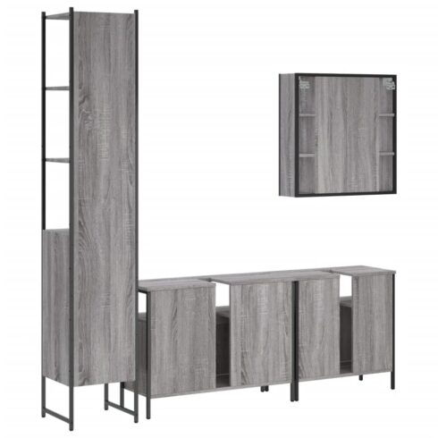 Įsigykite Vonios spintelių komplektas, 4 dalių, pilkas ąžuolo, mediena pigiau!