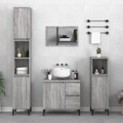 Vonios spintelių komplektas, 4 dalių, pilkas ąžuolo, mediena