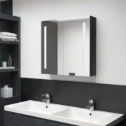 Veidrodinė vonios spintelė su LED apšvietimu, pilka, 60x11x80cm