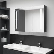 Veidrodinė vonios spintelė su LED apšvietimu, pilka, 80x12x68cm