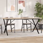 Valgomojo stalas, 180x90x75,5cm, pušis ir plieninis, X formos rėmas