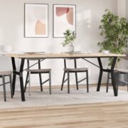 Valgomojo stalas, 200x100x75cm, pušis ir plieninis, Y formos rėmas